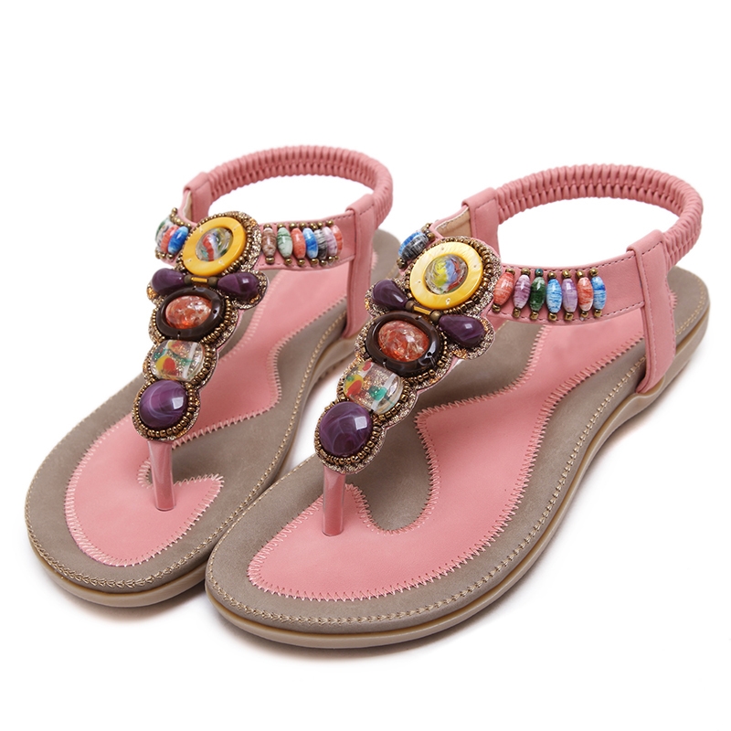 • Authentic New European and American ladies beaded sandals summer fighter sandals beach flat sandals T148 A5